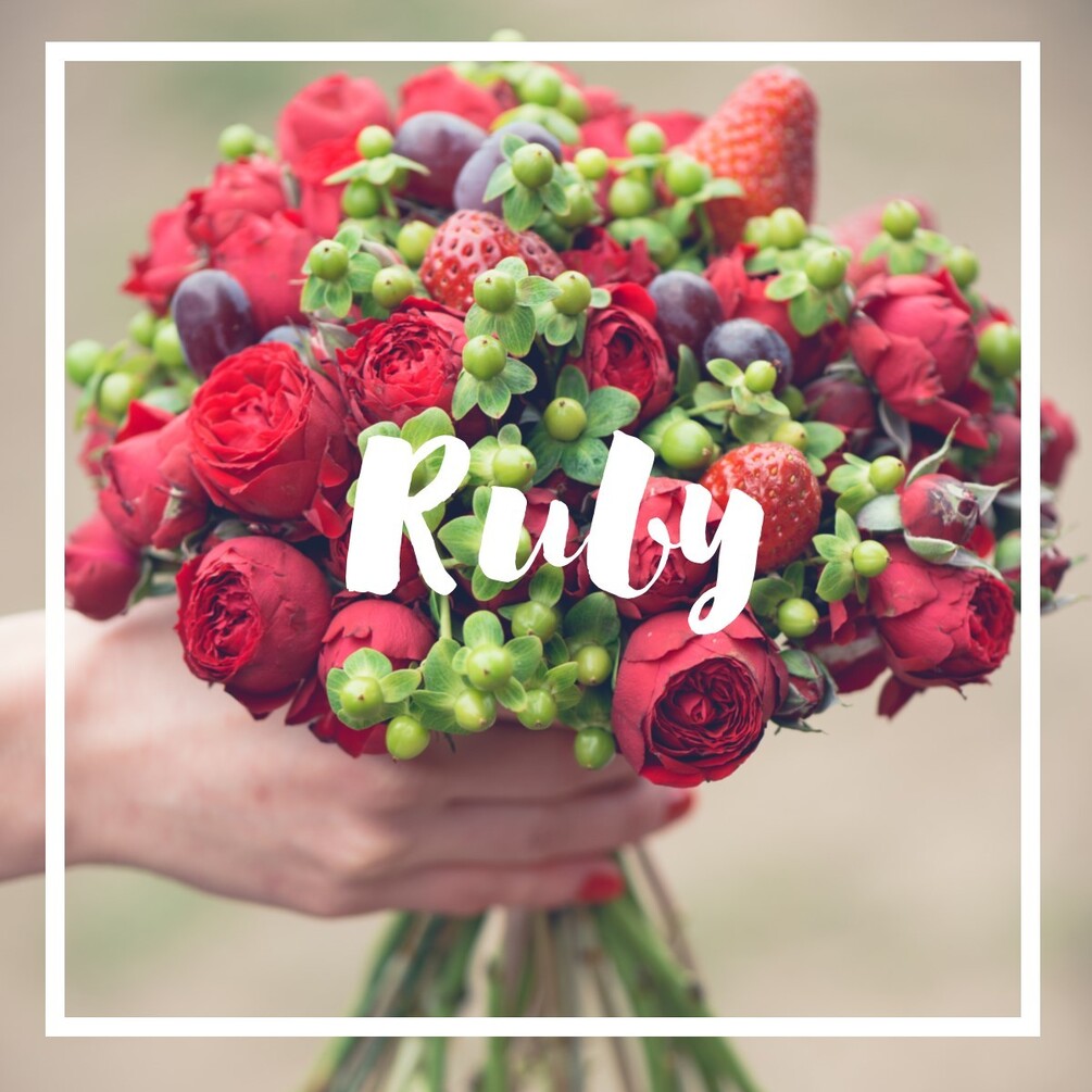 The stunningly red Ruby bouquet is a true showstopper! Get the recipe card now to learn what flowers make up this bouquet, how many of each type you will need to make it yourself, and tips for assembly.